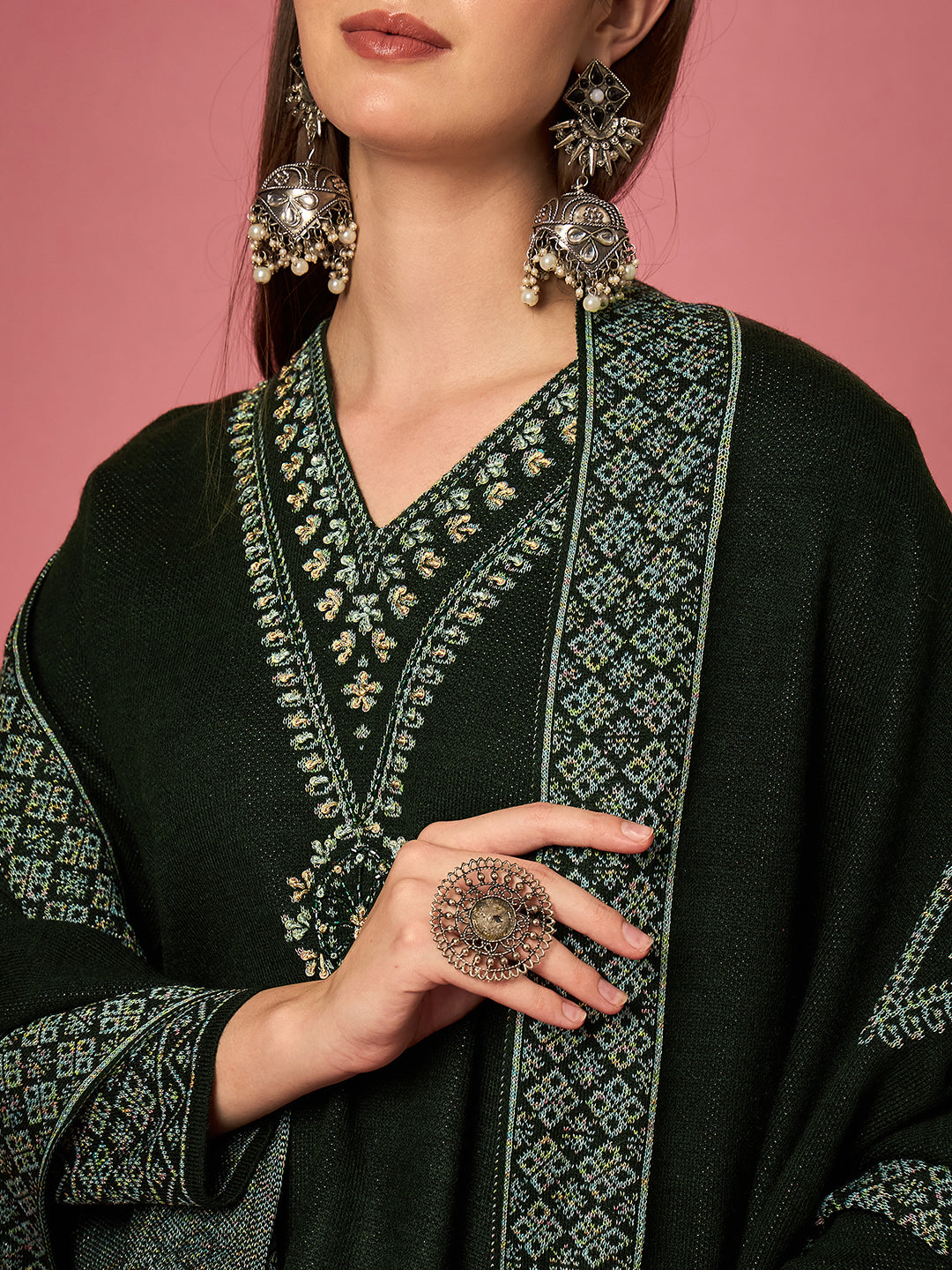 Clapton Women’s Wool Kaftan Kurti – Black, Golden Embroidery -6201