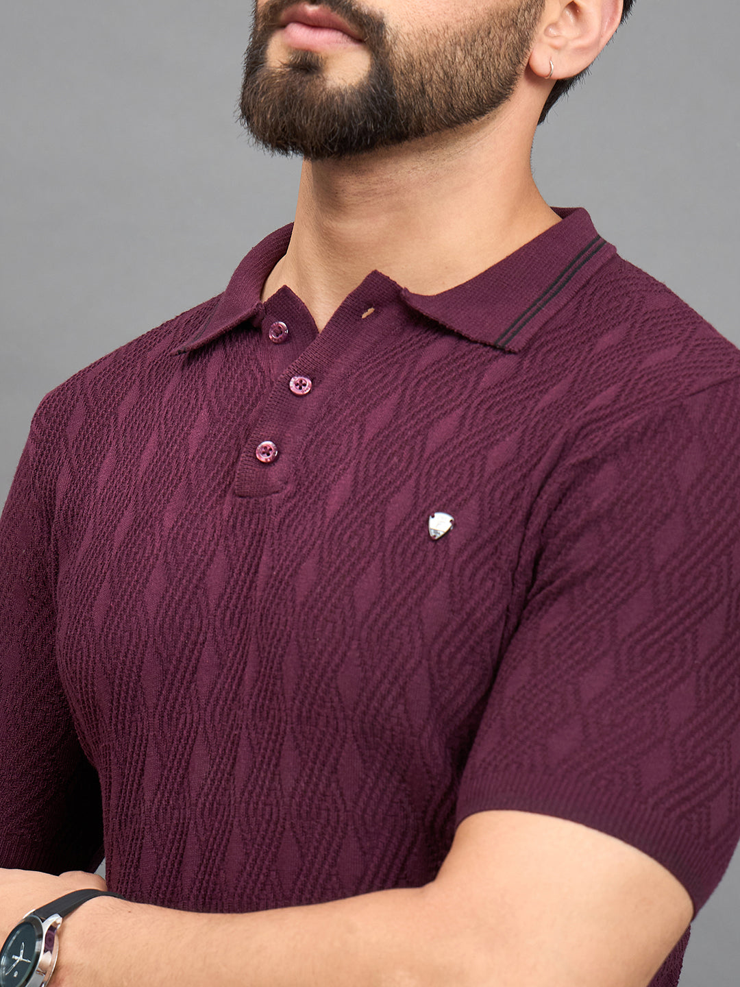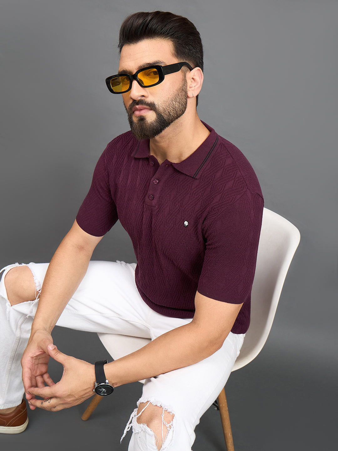 CLAPTON Men Knitted Polo Collar T-shirt Purple