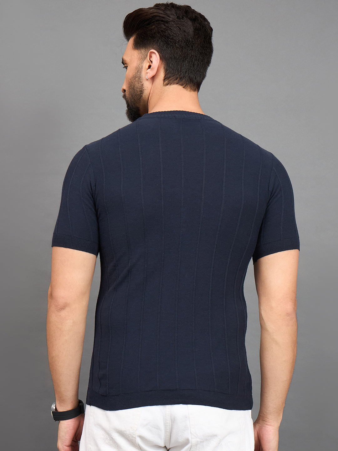 CLAPTON Men Knitted Round Neck T-shirt Navy