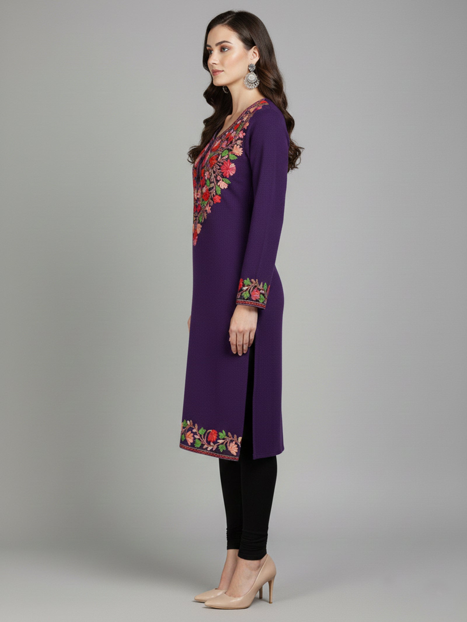 Clapton Purple Wolen Winter wear Embroidered Kashmiri Aari Work Kurta (PHERAN)