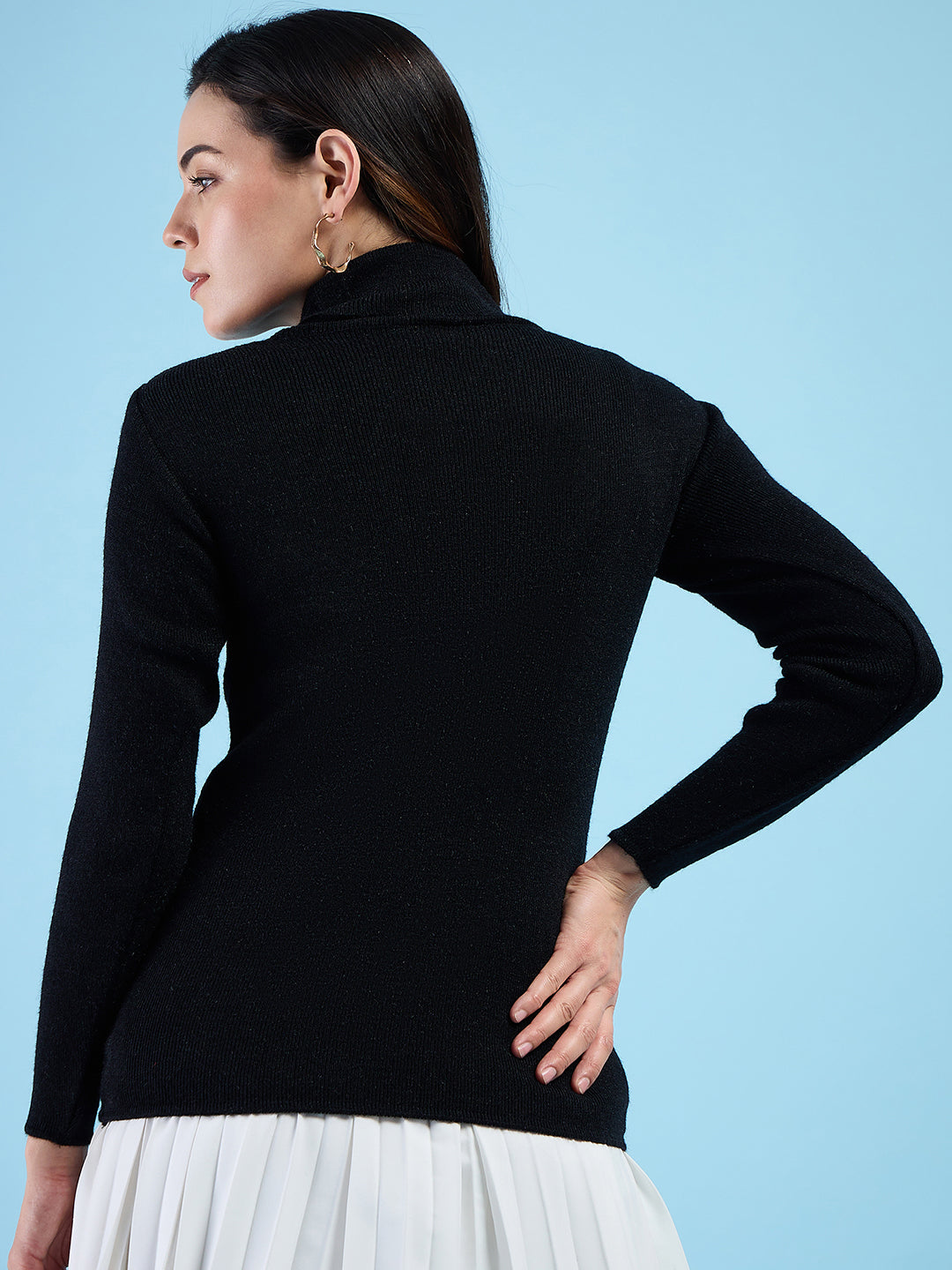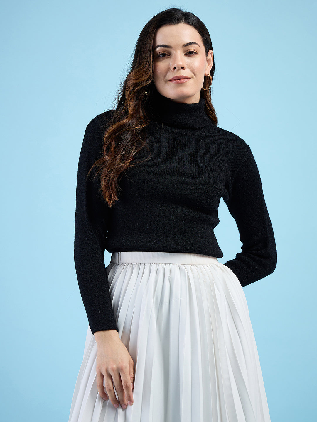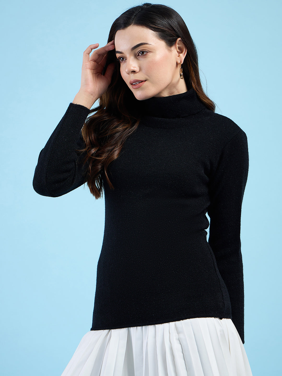 Clapton turtleneck High Neck Top knitted Winter Sweater for Women Pure Wool Full Sleeve Black