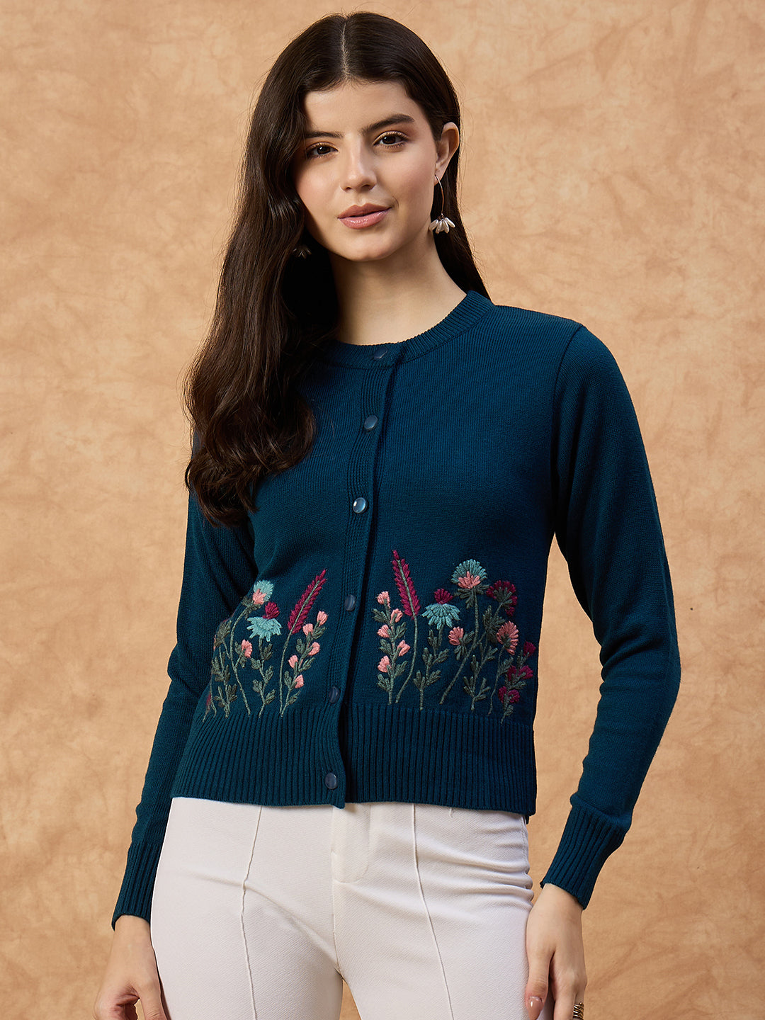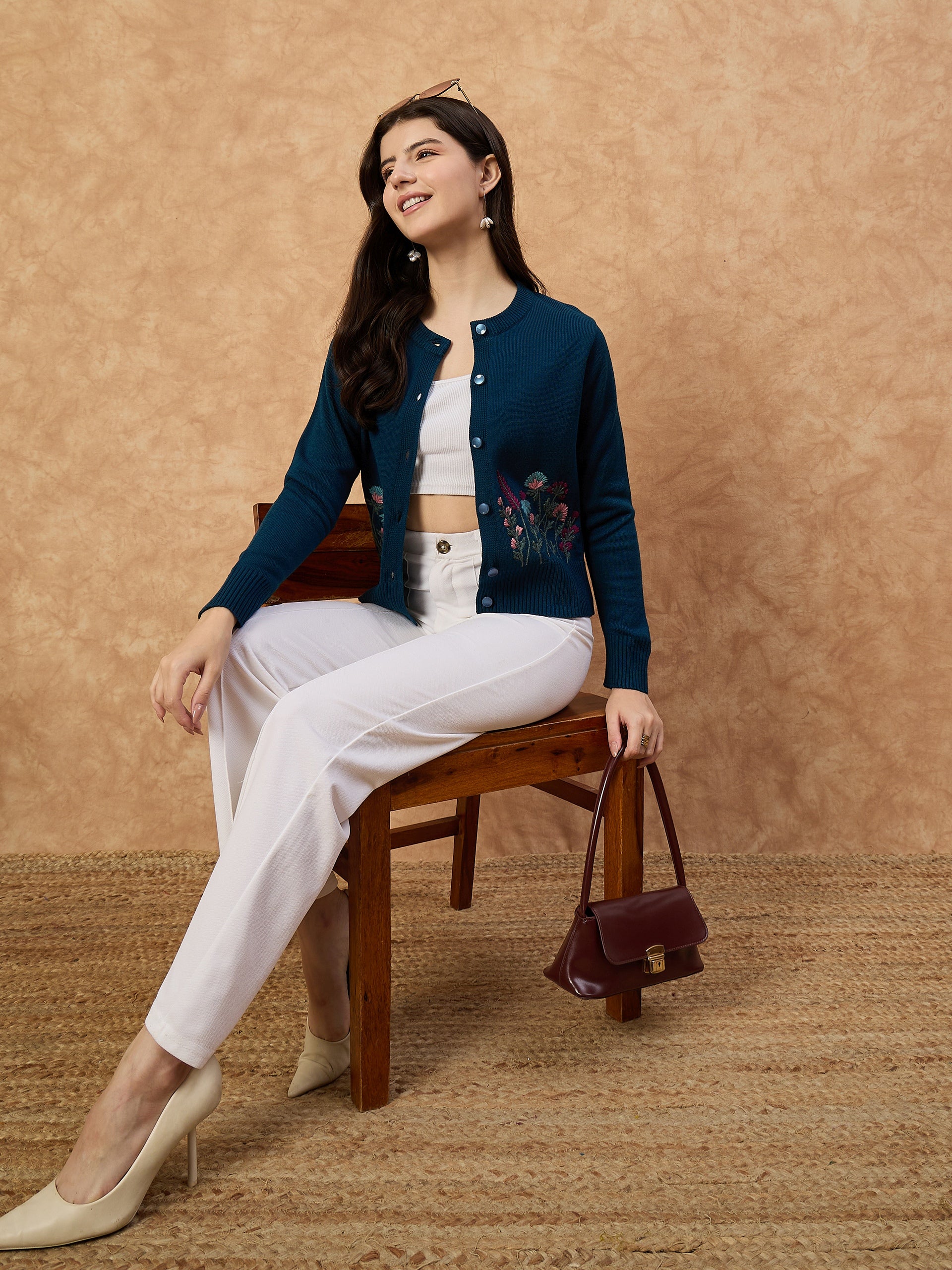 Clapton Women’s Peacock Knitted Floral Embroidered Cardigan 6110
