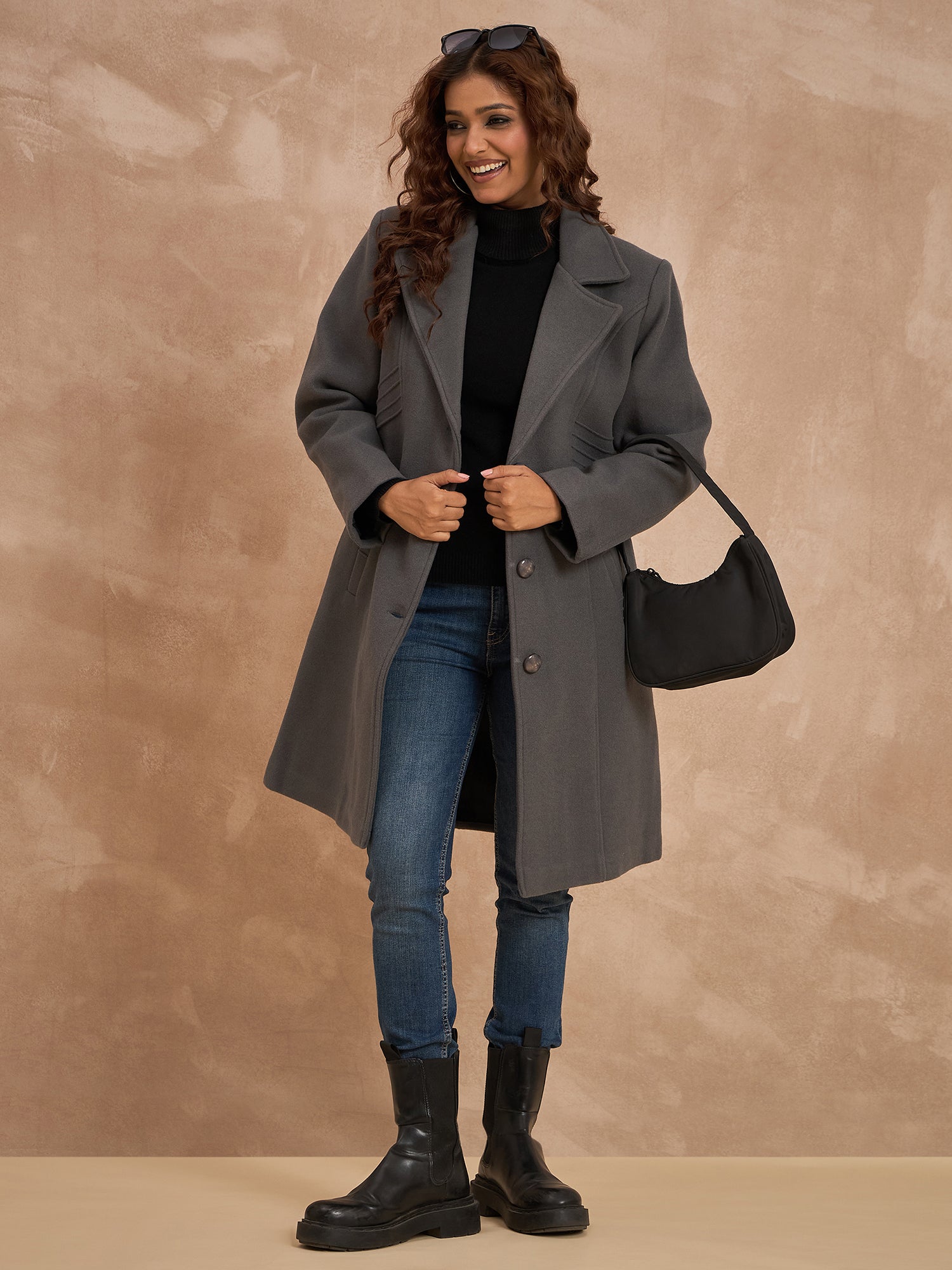 Clapton Women’S Wool Blend Long Winter Coat Grey – Classic Button Closure & Lapel Collar